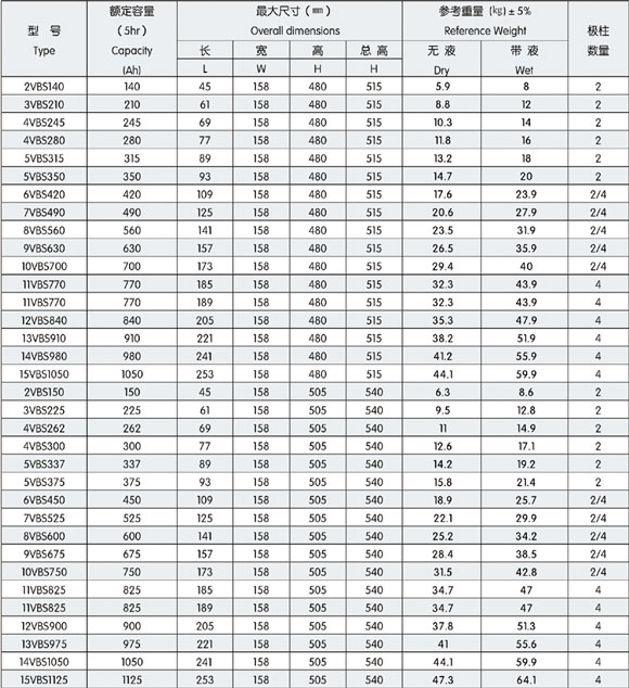 本文將會在2V158寬VBS系列牽引用鉛酸蓄電池的特性、用途、規(guī)格上面做詳細的說明與介紹,鎮(zhèn)江源升電源有限公司作為是專業(yè)的2V158寬VBS系列牽引用鉛酸蓄電池生產廠家,為您選購適合自己的產品做一定的指導是必要的。 要問2V158寬VBS系列牽引用鉛酸蓄電池哪里好,當選鎮(zhèn)江源升電源有限公司。 詳細信息 主要用途:為替代進口,本公司研制了符合英國BS標準要求的VBS系列牽引用鉛酸蓄電池,為國內進口電動叉車和電動牽引車配套,也可用于其他電動牽引車輛,本產口還可用于出口。