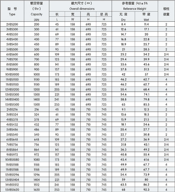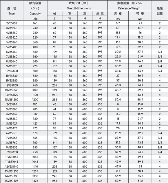 本文將會在2V158寬VBS系列牽引用鉛酸蓄電池的特性、用途、規(guī)格上面做詳細的說明與介紹,鎮(zhèn)江源升電源有限公司作為是專業(yè)的2V158寬VBS系列牽引用鉛酸蓄電池生產廠家,為您選購適合自己的產品做一定的指導是必要的。 要問2V158寬VBS系列牽引用鉛酸蓄電池哪里好,當選鎮(zhèn)江源升電源有限公司。 詳細信息 主要用途:為替代進口,本公司研制了符合英國BS標準要求的VBS系列牽引用鉛酸蓄電池,為國內進口電動叉車和電動牽引車配套,也可用于其他電動牽引車輛,本產口還可用于出口。